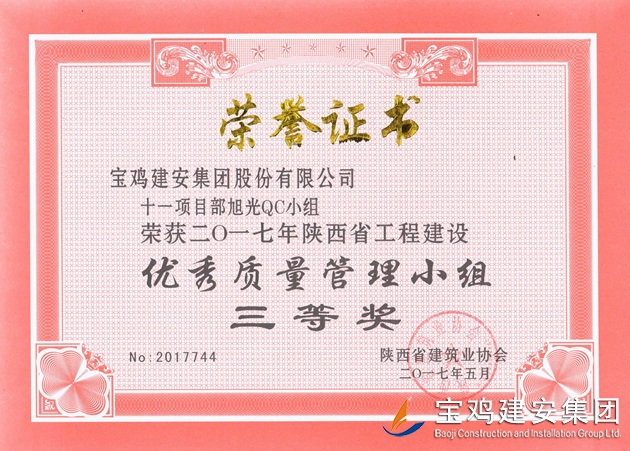 十一項目部旭光QC小組 優秀質量管理小組